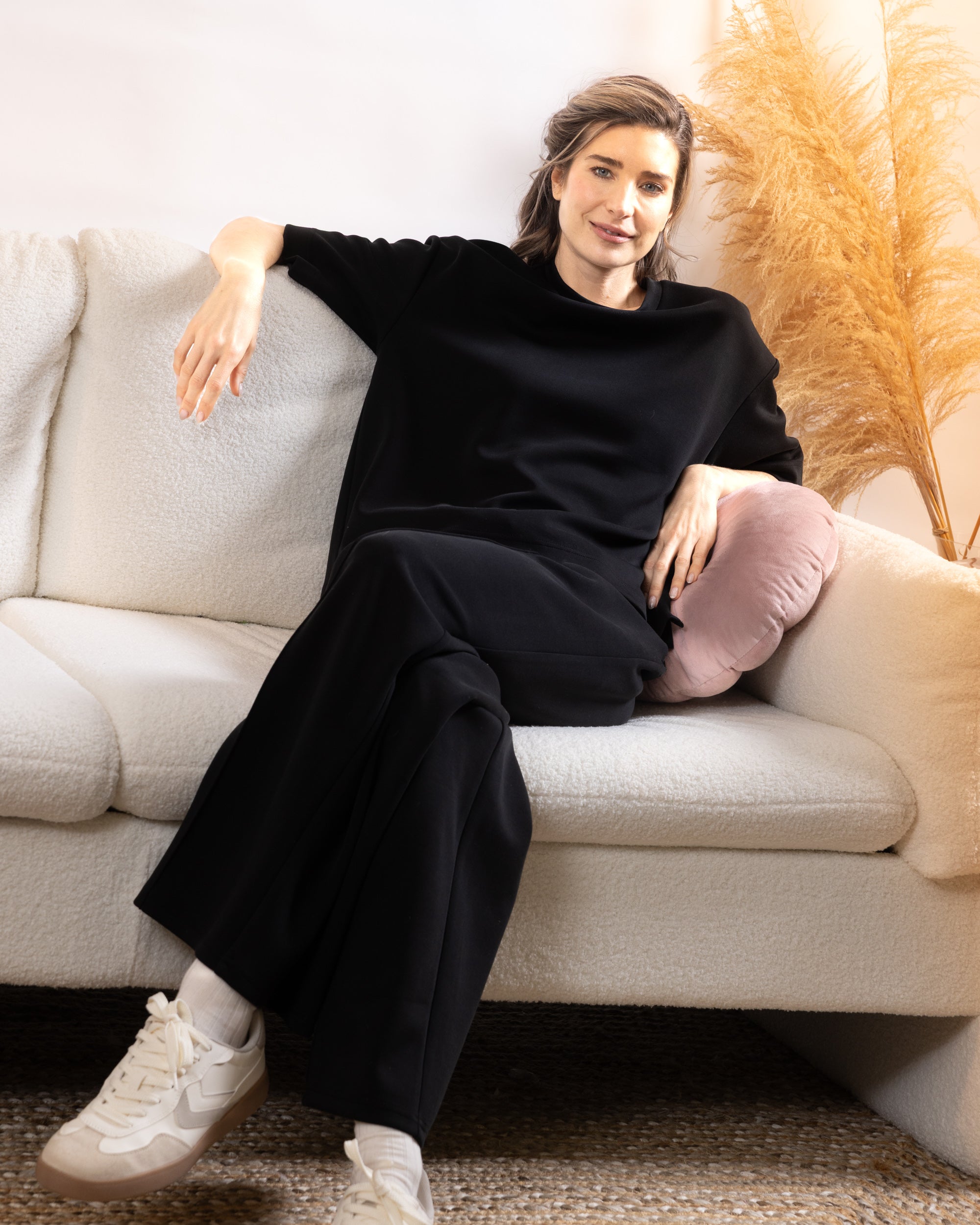 Snuggz Premium Black Sandwash Scuba Wide Leg Joggers