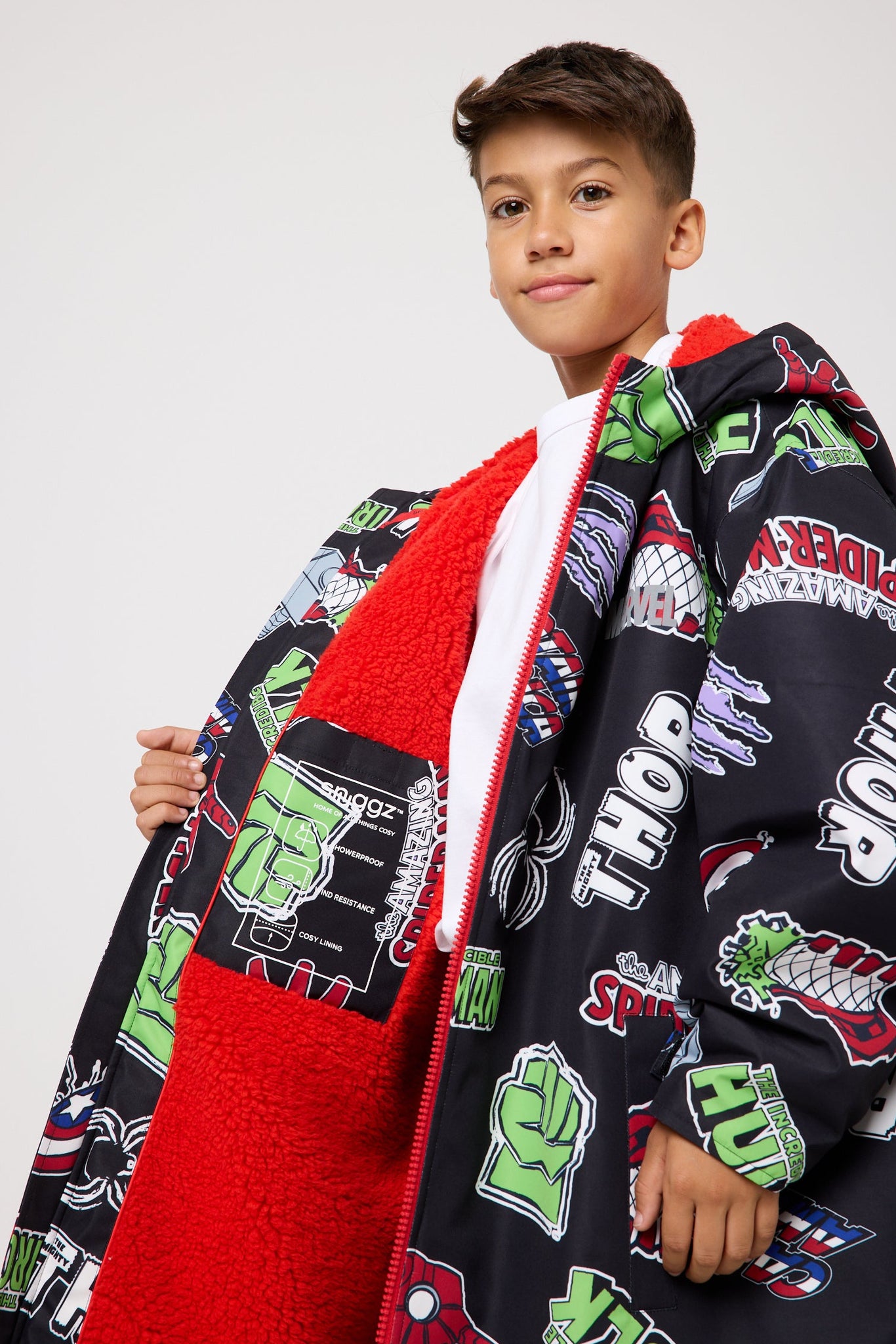 From epic battles to heroic teamwork, Marvel has a way of capturing imaginations like nothing else. The Snuggz Lite Boys Marvel Changing Robe brings that superhero spirit into everyday life, wrapping young Avengers in warmth, comfort and bold Marvel style.