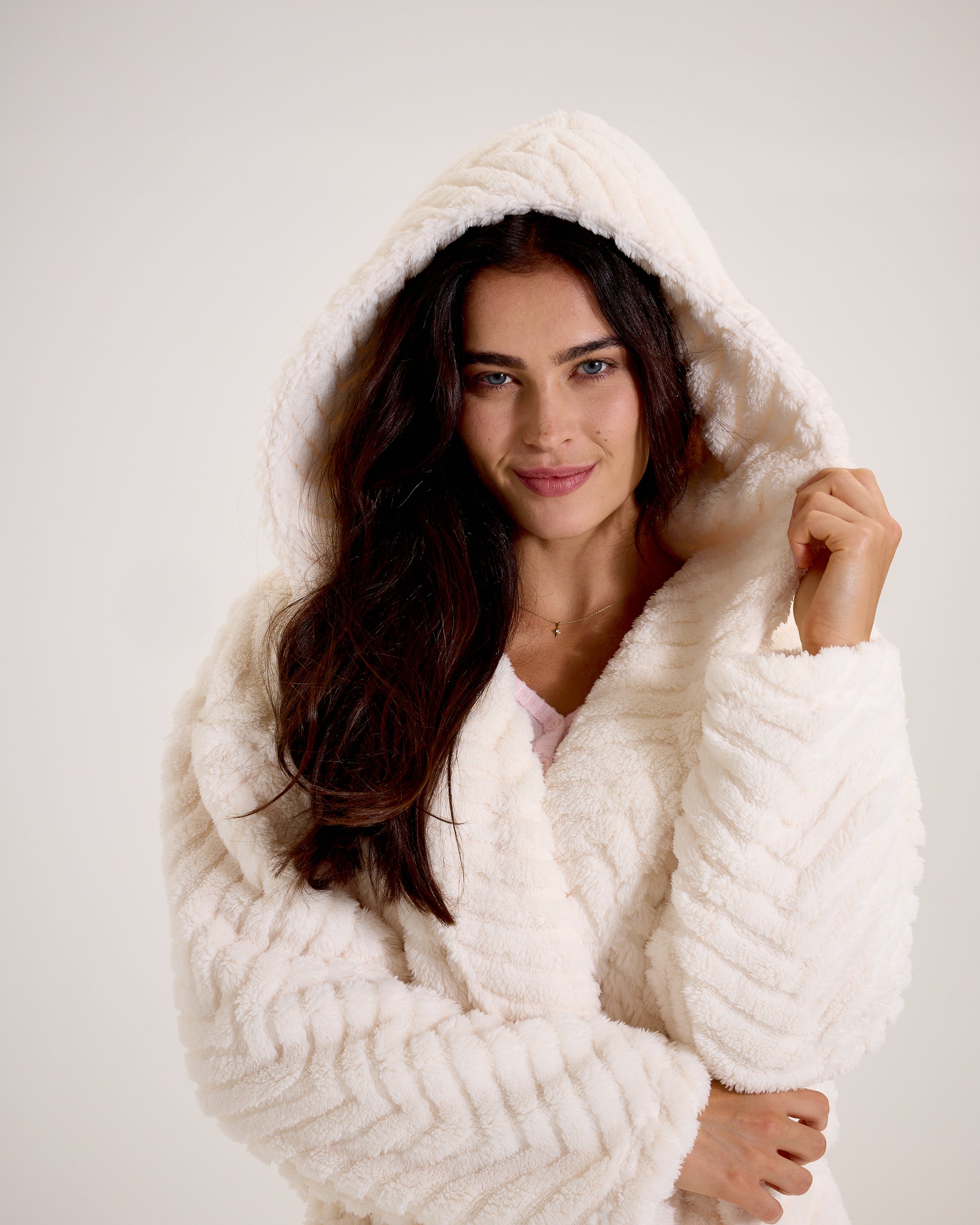 Snuggz Women Cream Zigzag Dressing Gown